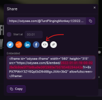 Odysee needs more effort, i.e. open “share” window, copy the “videoid” from the embedded link (as is highlighted in the image below), and insert it in the “videoid” location found in the basic syntax.